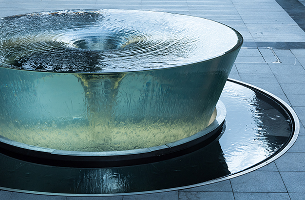 水本無形,它的物理特性讓它能輕易地跟隨容器而呈現不同的面貌。獨特的延展性使得水能呈現無以計數的不同效果。燈光的布置,介質的紋理,顏色和動態都能給水帶來無窮的變化。